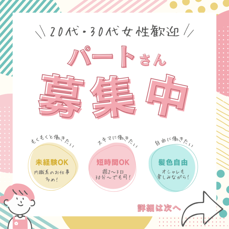 【スキマ時間を活用しませんか?】パートさん募集のお知らせ