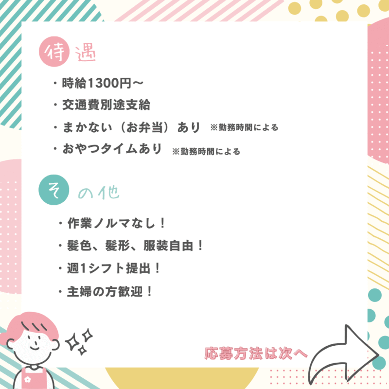 ・まかない(お弁当)あり※勤務時間による