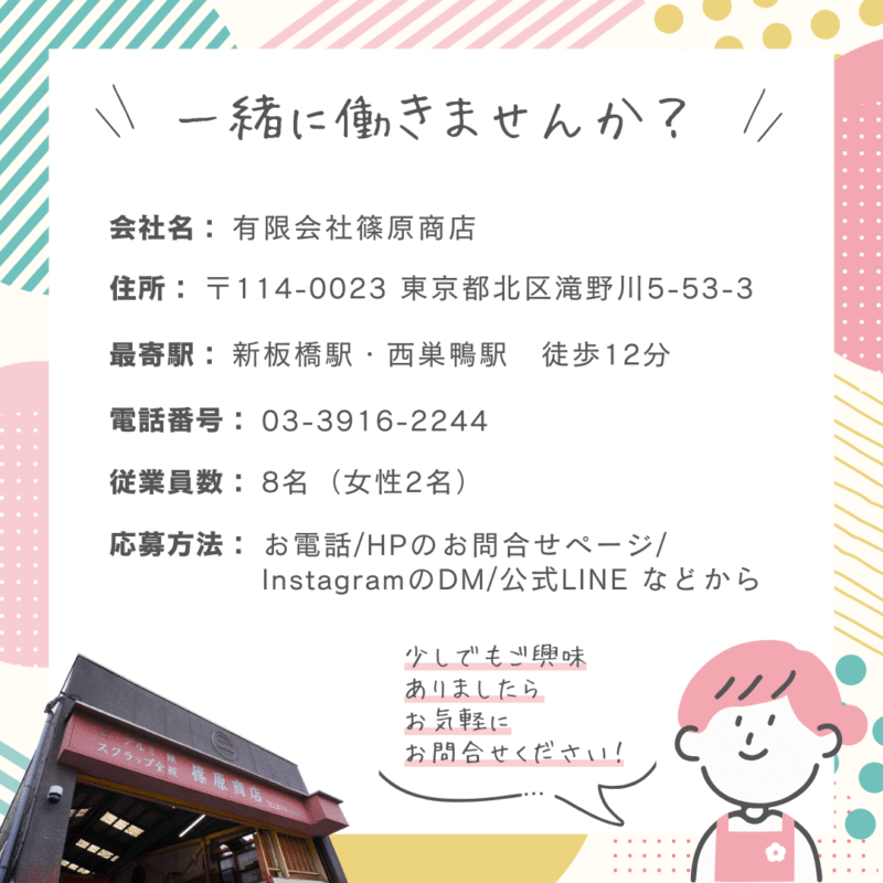 現在篠原商店では、一緒に働くパートさんを募集しています。